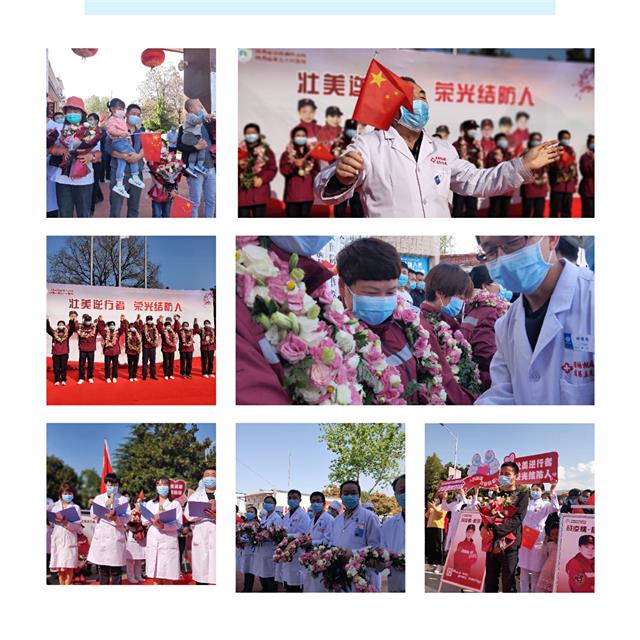4月8日,春意盎然,暖风徐来,我院为援鄂英雄举办了隆重的返院欢迎仪式,党委书记甘昭平主持。白衣飘飘,红旗挥舞,美丽的花环和芬芳的花束簇拥着英雄的脸庞,在《我和我的祖国》无比壮丽的歌声中,兴奋、幸福、感动、激动之情四溢,医院化成一片欢乐的海洋。